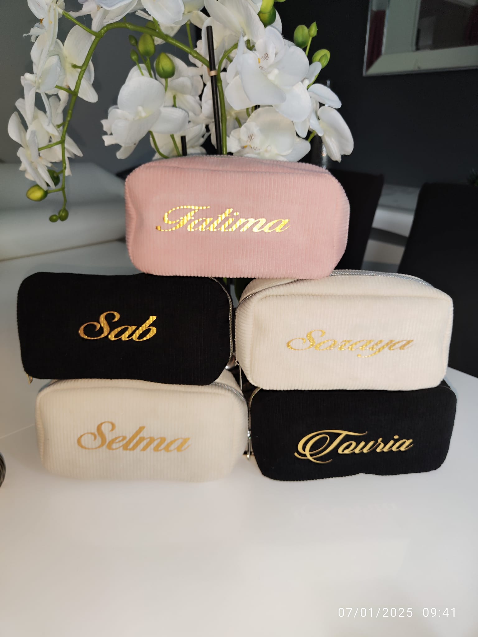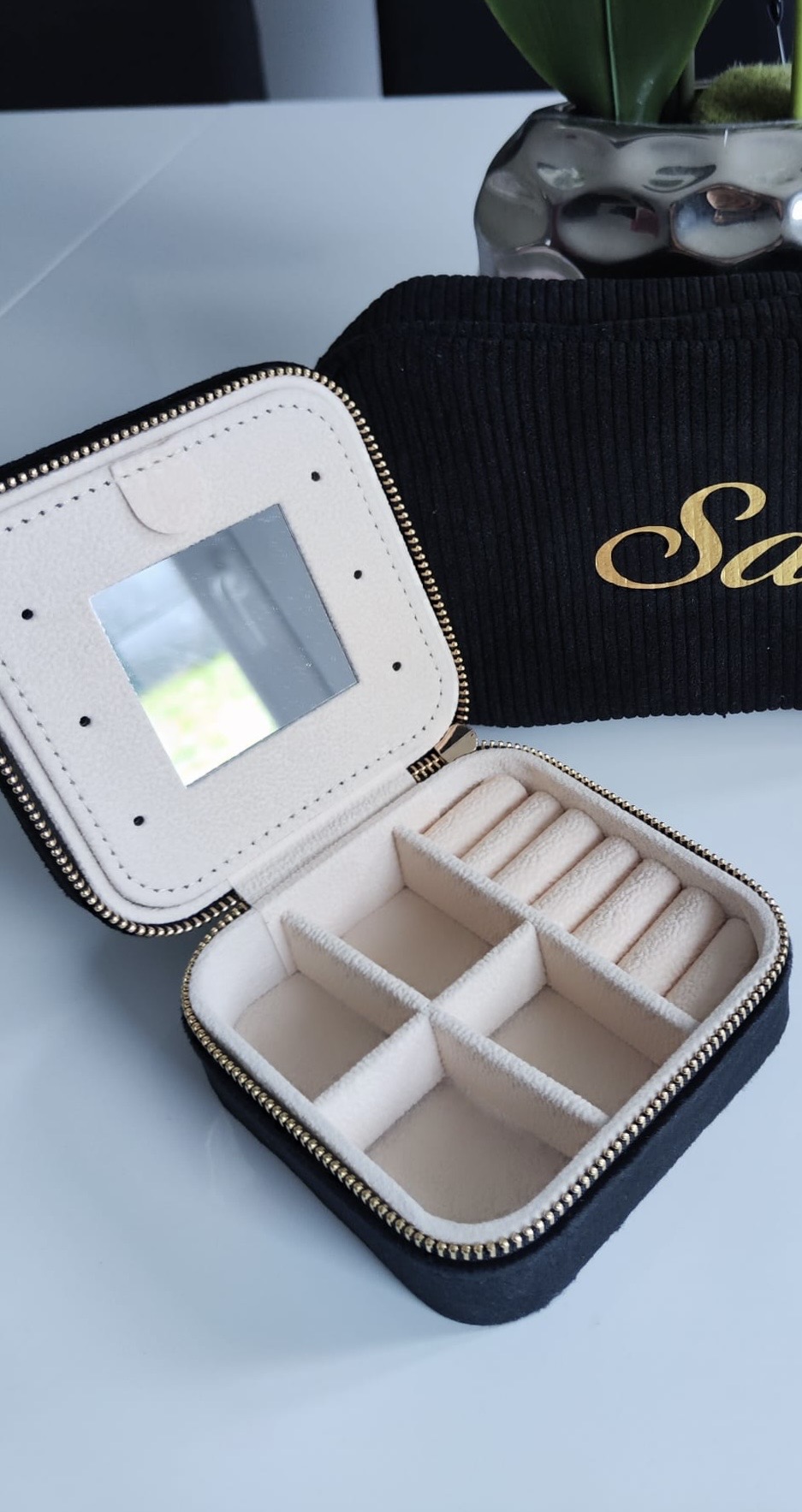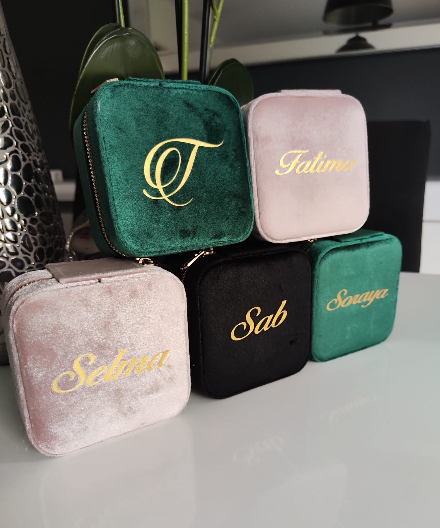 Pourquoi prendre juste une trousse ou une boîte à bijoux quand tu peux avoir les deux ?! Personnalisables avec le mot ou prénom de ton choix, elles sont parfaites pour ranger ton makeup et tes petits trésors.